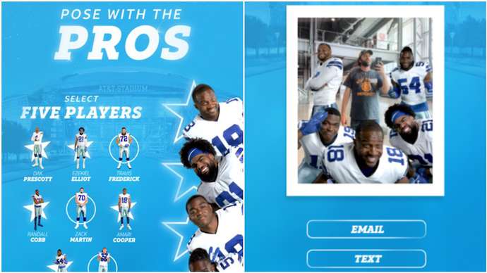 The Dallas Cowboys captured the sporting world’s attention last year with the launch of their augmented reality ‘Pose with the Pros’ photo booth experience. Fans walked up to a large screen which was installed around the stadium, and interacted to select their favourite players. As they posed for the photo, the players virtually walked onto screen next to them and posed for a photo. The photos were able to be shared to social media instantly.
